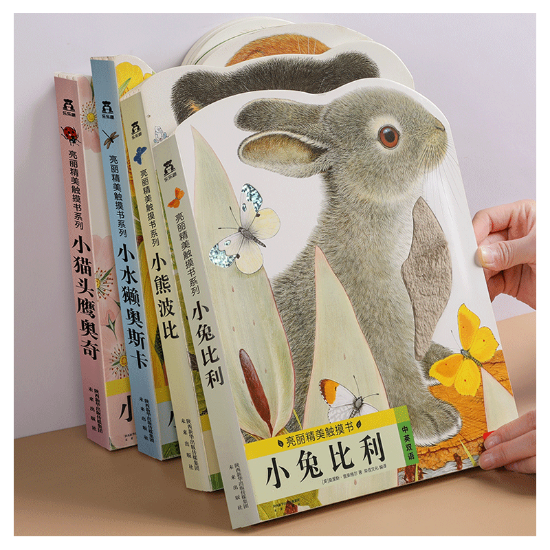 Fun, click to read version touch book, early childhood education, 0-3 years old, Montessori picture book, baby, bright and exquisite 4 volumes, little rabbit, Billy, bear, Bobby, children's floor book, touch enlightenment, hole, educational toys, cognitive mechanism, push and pull 1-2