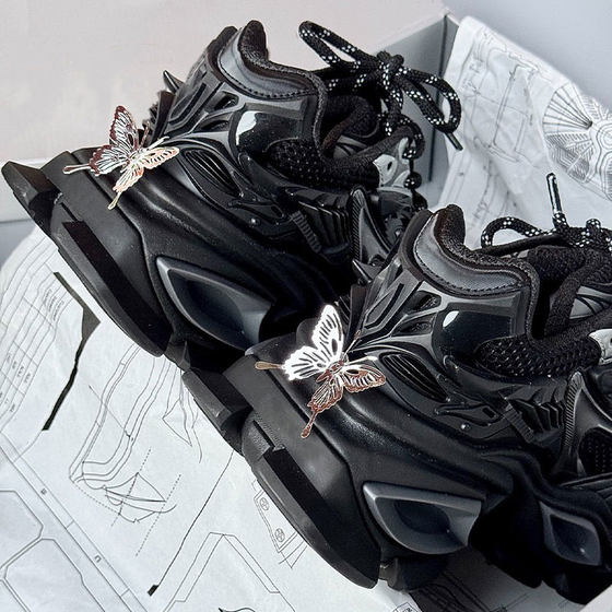 Hong Kong genuine spot different-eyed cat-eyed daddy shoes spring black samurai mecha shoes thick sole casual height-enhancing shoes for men and women