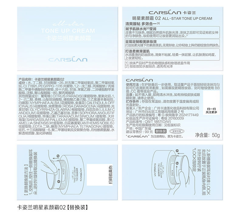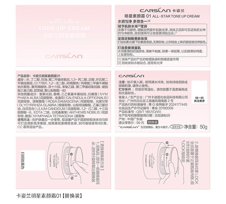 Kazilan star makeup cream naturally brightens skin color without makeup lazy cream facial concealer cream three-in-one official